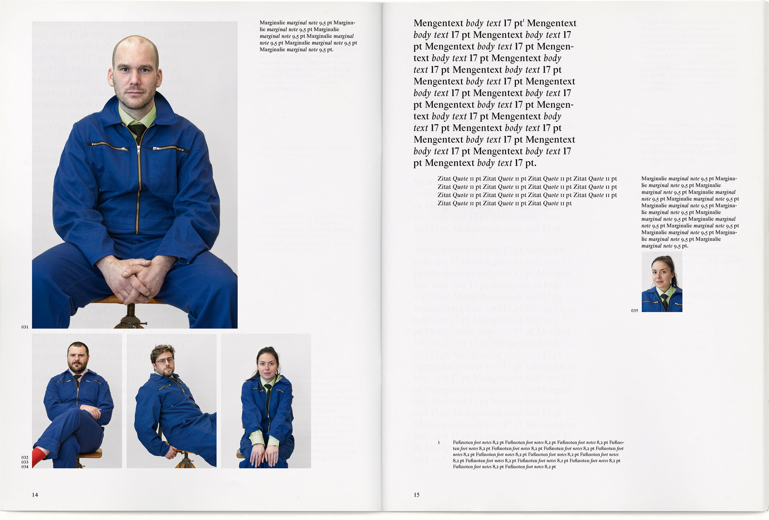 Mit welchem der Text-Module welcher Inhalt dargestellt wird, ist nicht festgelegt. Auch wie Text und Bild verteilt oder welche Dramaturgie, Reihenfolge und Sinnabschnitte gewählt werden, soll inhaltlich und frei von Konventionen entschieden werden.